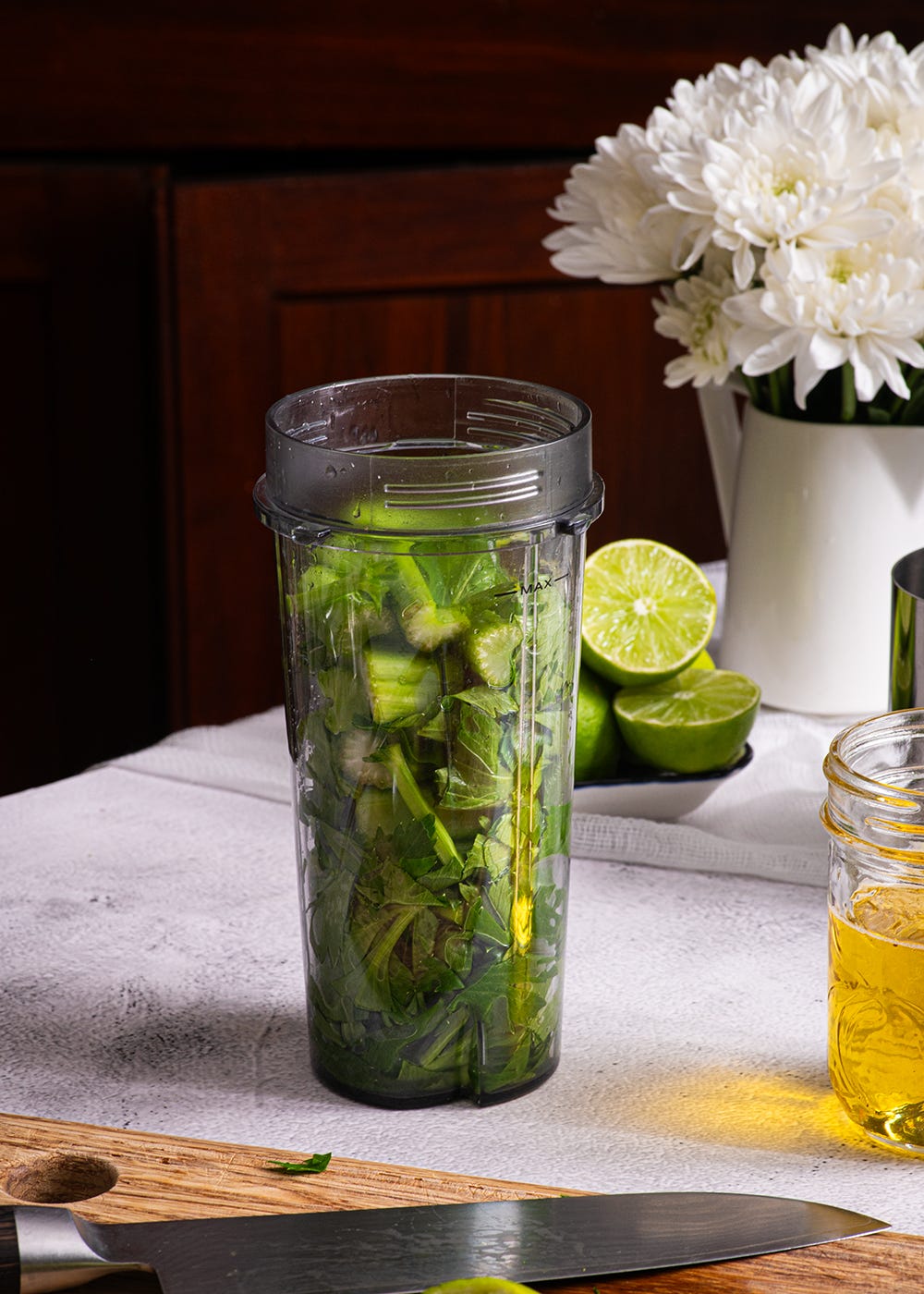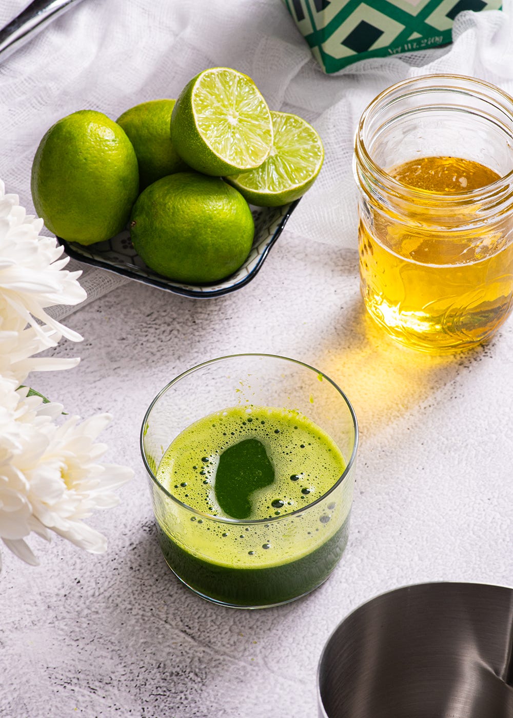 Unfortunately, you can’t make this juice ahead of time. Well, you can, if appearance is not all that important to you. The juice does start to oxidize fairly quickly. It will go from bright green to muddy green in an afternoon. This in no way affects the taste of the juice; it’s just not the prettiest hue. But if that doesn’t bother you, you can make it the night before, no problem. I am shallow when it comes to cocktails, so I think it’s best to whip up the juice just before your guests arrive.